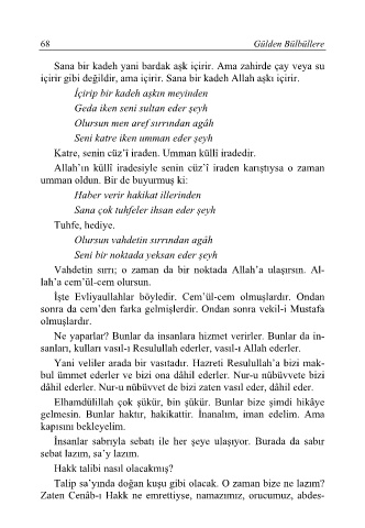 içirir gibi değildir, ama içirir. Sana bir kadeh Allah aşkı içirir.