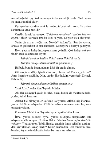 İlme’l-yakîn, bilmek; ayne’l-yakîn, bildiğine ulaşmaktır. Bu