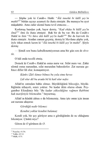 ihata etmiştir. Aradan zaman geçmiş, demiş ki Mevlana şüphe yok,