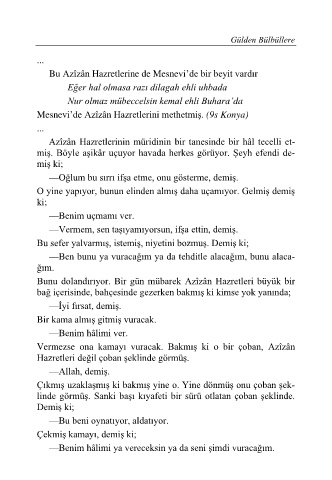 Mesnevi’de Azîzân Hazretlerini methetmiş. (9s Konya)