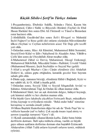Küçük Silsile-i Şerif’in Türkçe Anlamı
