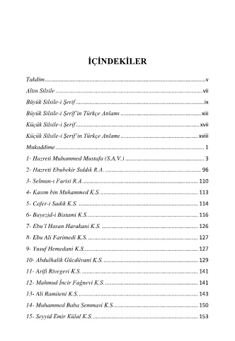 Küçük Silsile-i Şerif ................................................................................ xvii
