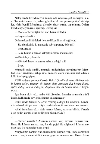 namazı var, iradesi küllî iradeye geçenin namazı var. Huzur kim-