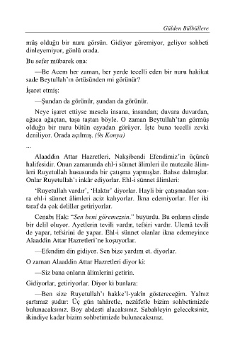 müş olduğu bir nuru görsün. Gidiyor göremiyor, geliyor sohbeti
