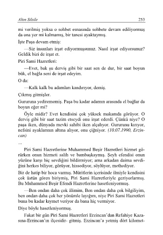 Fakat bir gün Piri Sami Hazretleri Erzincan’dan Refahiye Kaza-