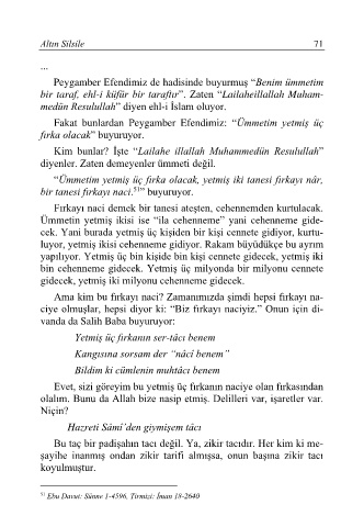 luyor, yetmiş ikisi cehenneme gidiyor. Rakam büyüdükçe bu ayrım