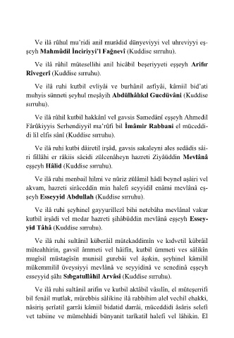Ve ilâ rûhil kutbil hakkânî vel gavsis Samedânî eşşeyh Ahmedil