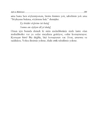 ama bunu ben söylemiyorum, bizim ilmimiz yok, tahsilimiz yok ama