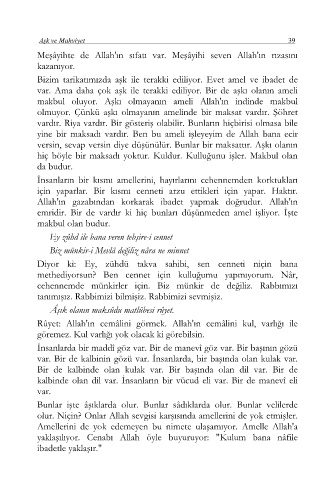 makbul oluyor. Aşkı olmayanın ameli Allah'ın indinde makbul