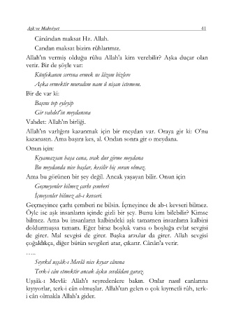 çoğaldıkça, diğer bütün sevgileri atar, çıkarır. Cânân'a verir.