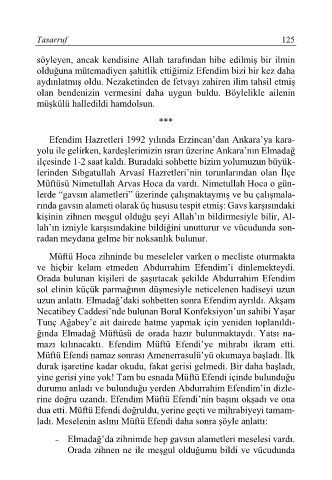 uzun anlattı. Elmadağ’daki sohbetten sonra Efendim ayrıldı. Akşam