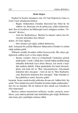 buyurdu. Sonra yarıda kestiği sohbetine devam etti. Sohbet bitti. Bu