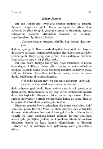 dedi ve içeri girdi. Ben o arada dergâhın bahçesinde tek başıma