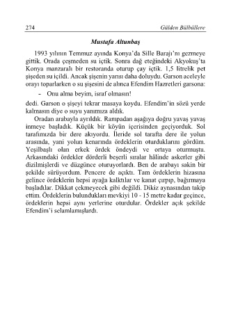 orayı toparlarken o su şişesini de alınca Efendim Hazretleri garsona: