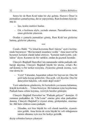 Sonra bir de Rum Kralı’ndan bir elçi gelmiş. Hazret-i Ömer’in