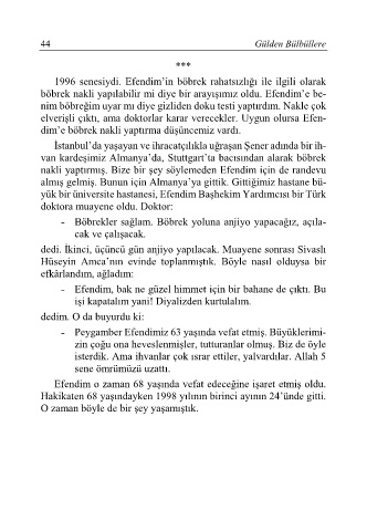1996 senesiydi. Efendim’in böbrek rahatsızlığı ile ilgili olarak