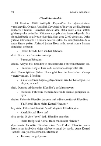 dedim. Arayan kişi Efendim’in amcalarından Fahrettin Efendim idi.