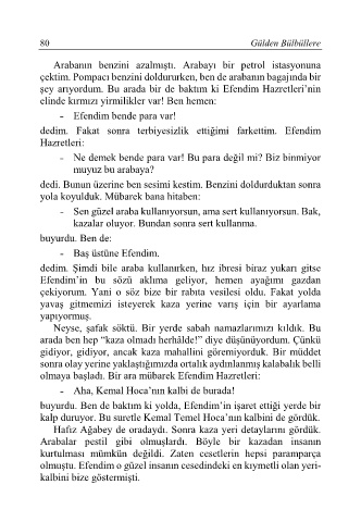 dedi. Bunun üzerine ben sesimi kestim. Benzini doldurduktan sonra