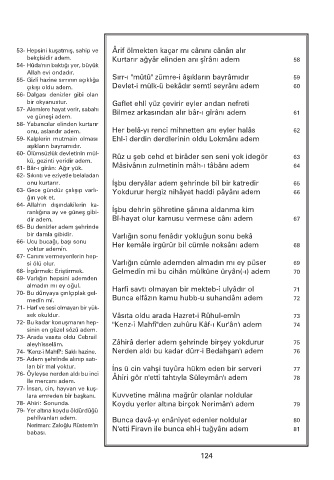 60- Ölümsüzlük devletinin mül- Rûz u şeb cehd et birâder sen seni yok idegör 63