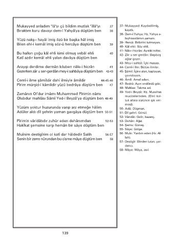 Arayıp derdime dermân kıluben nâle-i hicrân 41 44- Cemî-i ilm: Bütün ilimler.