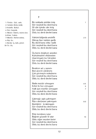 2- Vahdet: Birtik, teklik. Gör neyledi bu derd bana