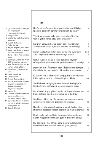 1- Çık buluttan ey ay, sevgili- Hurûc et ebrûdan mâhım görem bir kez dilârâyı 1