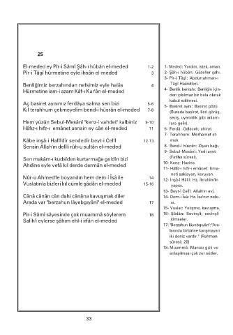 El-meded ey Pîr-i Sâmî Şâh-ı hûbân el-meded 1-2 1- Meded: Yardım, istek, aman.