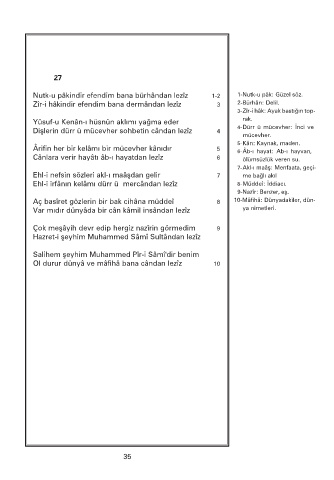 Nutk-u pâkindir efendim bana bürhândan lezîz 1-2 1-Nutk-u pâk: Güzel söz.