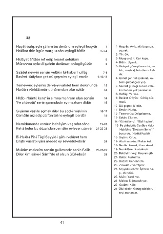 Hakîkat tîrin irgür murg-u cânı eylegil bîdâr 2-3-4 uyanık.