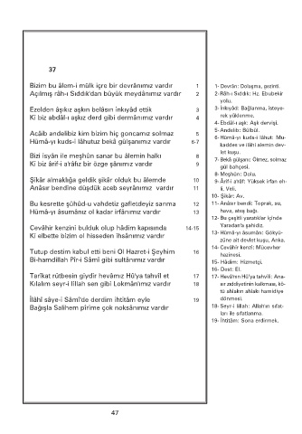 Hümâ-yı kuds-i lâhutuz bekâ gülşanımız vardır 6-7 kaddes ve ilâhi alemin dev-