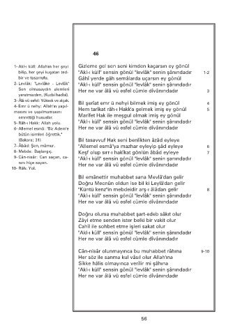 2- Levlâk: "Levlâke - Levlâk" "Akl-ı küll" sensin gönül "levlâk" senin şânındadır