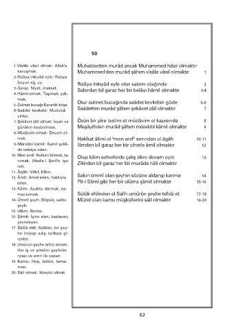 14- Ümmî şeyh: Bilgisiz, sahte Mürid olan kamu müşküllerini sâil olmaktır 19-20