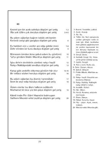 Merhamet kıl nice yüz bin pâye düştüm gel yetiş 19 15- Hâr: Diken.